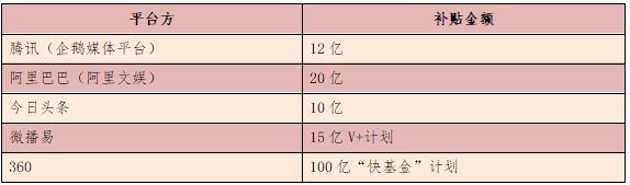 2017年多個短視頻平臺補貼措施