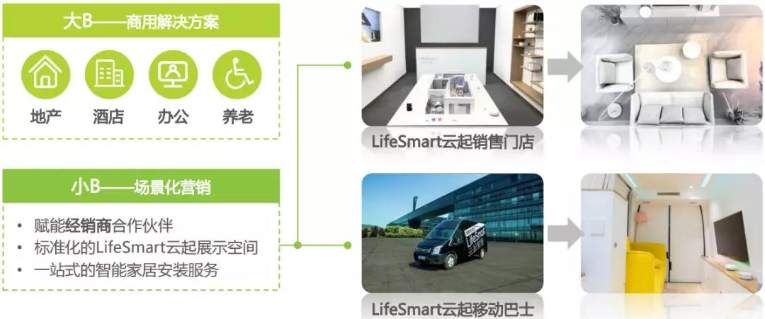LifeSmart云起的全屋智能解決方案主要面向高端用戶群體,通過(guò)B端的線下渠道銷售給最終用戶。一方面,LifeSmart云起與房地產(chǎn)、酒店、養(yǎng)老等行業(yè)客戶達(dá)成戰(zhàn)略合作,采用項(xiàng)目制的方式落地商用解決方案。同碧桂園聯(lián)手打造的馬來(lái)西亞森林城市智能豪宅、為阿里巴巴定制的智能會(huì)議系統(tǒng)等都是其中的標(biāo)桿案例。另一方面,LifeSmart云起基于眾多中小經(jīng)銷商客戶,構(gòu)建起穩(wěn)固的銷售渠道。通過(guò)向經(jīng)銷商輸出標(biāo)準(zhǔn)化的展示空間和服務(wù)體系,可以由智能機(jī)器人完成LifeSmart云起樣板間內(nèi)的產(chǎn)品介紹和演示。依靠可視化的智能家居體驗(yàn)與一站式的安裝服務(wù),LifeSmart云起不僅可以觸達(dá)到廣泛的終端消費(fèi)者,更能夠有效實(shí)現(xiàn)用戶流量的轉(zhuǎn)化。