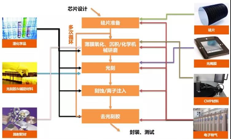 圖表2  芯片制造工序各單項工藝均配套相應材料