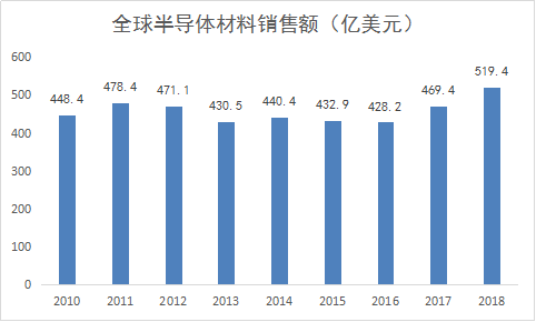 SEMI數(shù)據(jù)顯示,2018年全球半導體材料市場銷售額約519.4億美元,其中制造材料銷售額約322億美元,封裝材料銷售額約197億美元。在整個電子信息產(chǎn)業(yè)中,半導體材料的產(chǎn)值雖不能算極高,但卻具有極大的附加值和特有的產(chǎn)業(yè)生態(tài)支撐作用,半導體材料的自主可控關乎整個電子信息產(chǎn)業(yè)生態(tài)安全。