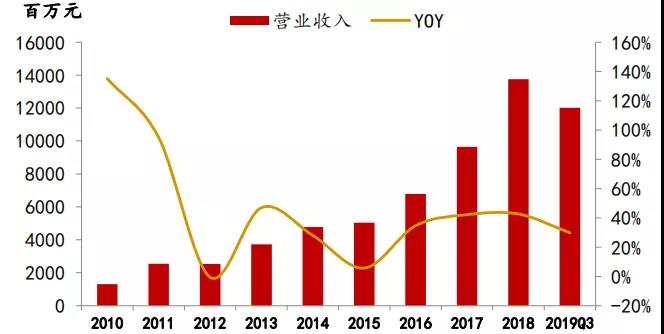 圖表16  中環(huán)股份營業(yè)收入(百萬元)
