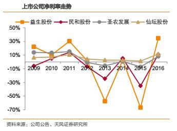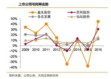 受產品價格彈性影響,越靠近上游,盈利能力的波動越大。財務指標上,毛利率、凈利率的波動,益生股份>民和股份>圣農發(fā)展>仙壇股份。