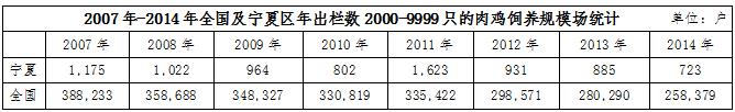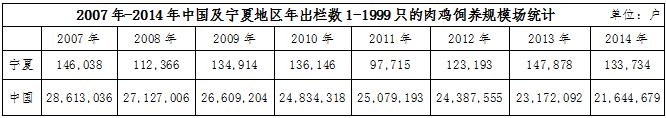 從以上數據分析可知,寧夏的肉雞飼養(yǎng)規(guī)模上得不到很好的提升,大多數都僅僅是靠家庭小規(guī)模飼養(yǎng)為主,大規(guī)模的飼養(yǎng)場在寧夏地區(qū)非常匱乏。不僅對寧夏肉雞行業(yè)的市場影響非?;靵y,也不能達到更高更優(yōu)質的產量,提升寧夏肉雞行業(yè)市場競爭力顯的尤為困難。