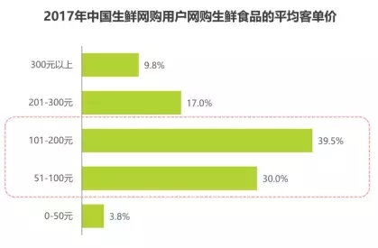101-200元為生鮮網(wǎng)購單均消費集中段,51-100元為第二單均消費段。