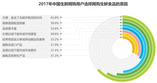 方便是用戶網(wǎng)購生鮮食品的主要原因,能夠直接配送到家、品類豐富對用戶有較大的吸引力。