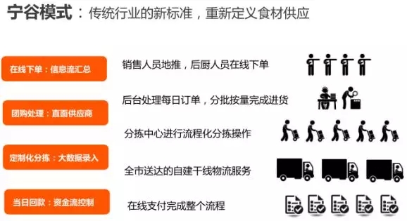 寧谷物配以“易訂貨”軟件為依托,欲打造區(qū)內(nèi)最大的城市商用食材供應(yīng)鏈平臺;其商業(yè)模式是用平臺化團購方式+城市內(nèi)自建物流配送體系,實現(xiàn)對城市餐飲商戶所需食材的全方位供應(yīng)。其生鮮B2B模式在銀川城區(qū)已初具規(guī)模,具有代表性,本報告將著重分析。