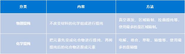 半導體材料所有的半導體材料都需要對原料進行提純,要求的純度在6個“9”以上,最高達11個“9”以上。提純的方法分兩大類: