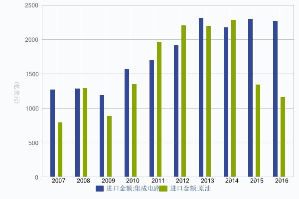 中國芯片和原油進口金額
