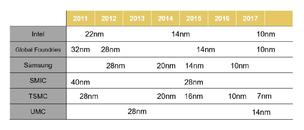 全球領先半導體企業(yè)工藝制程水平