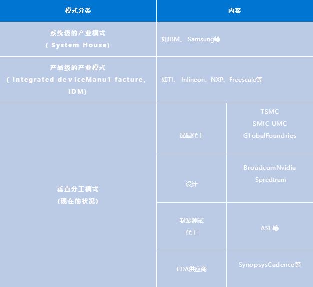 全球集成電路領域的產(chǎn)業(yè)模式分為: