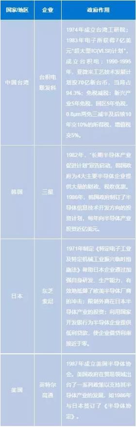 根據(jù)中國臺灣、韓國等國家/地區(qū)半導體產(chǎn)業(yè)發(fā)展的經(jīng)驗,政府的扶持具有不可替代的作用。臺灣地區(qū)1974年成立臺灣工研院,1987年成立臺積電,并在其上投入了8年后,才實現(xiàn)盈虧平衡,走上獨立的發(fā)展的道路;韓國政府通過為國內(nèi)半導體企業(yè)提供大量的財政、稅收優(yōu)惠來支持本國半導體產(chǎn)業(yè)的發(fā)展。因此,政府的持續(xù)投入是IC制造和發(fā)展的必要條件。
