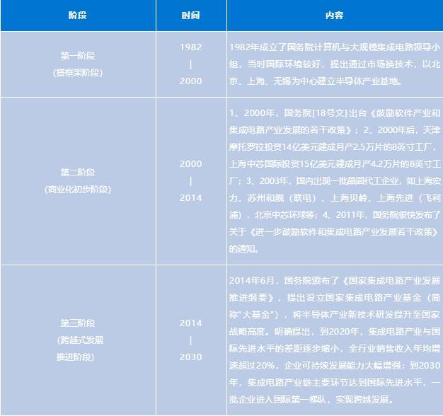 第一階段(1990年代末到2000年),希望建立強大的本土集成電路制造產(chǎn)業(yè),但并未成功;