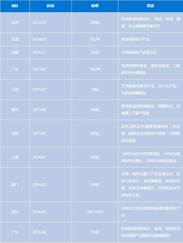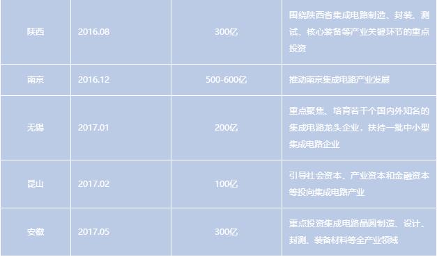 各省市集成電路產(chǎn)業(yè)基金